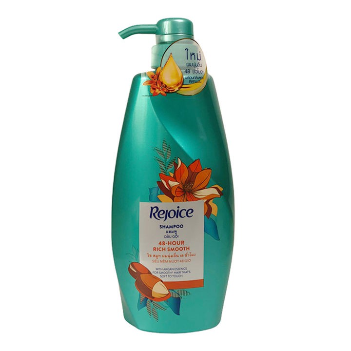 Dầu Gội Rejoice Siêu Mềm Mượt Rich Smooth 48 Giờ Shampoo giúp nuôi dưỡng mái tóc khỏe mượt từ sâu bên trong, chiết xuất từ Tinh dầu Argan - phục hồi hư tổn, dưỡng tóc siêu mềm mượt suốt 48 giờ.