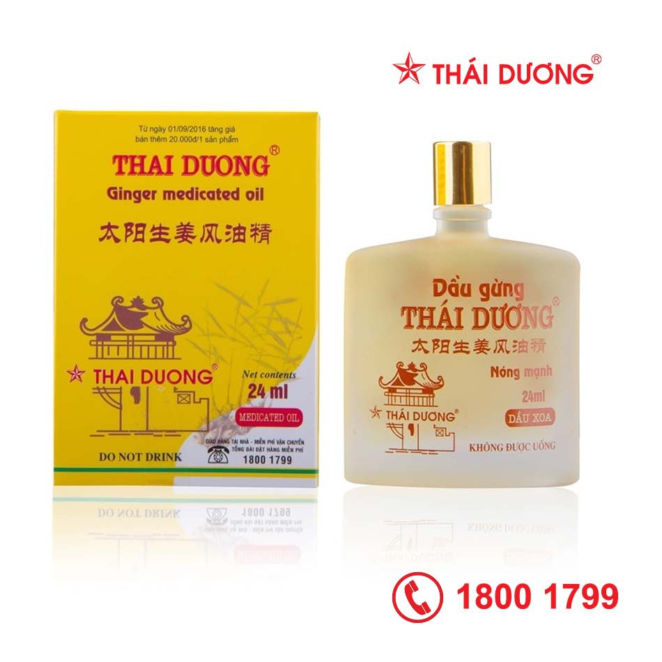 Dầu gừng Thái Dương là sản phẩm của Sao Thái Dương có thành phần chính gồm methol, tinh dầu bạc hà, tinh dầu tràm, methyl salicycas, tinh dầu long não, tinh dầu hương nhu trắng, tinh dầu quế, gừng,... hiệu quả trong điều trị triệu chứng đau đầu, đau lưng, đau dây thần kinh, đau vai gáy, đau nhức do phong thấp, lòng bàn chân, bàn tay lạnh giá, tê, mỏi, cảm cúm, ngạt mũi, sổ mũi, đau bụng lạnh, buồn nôn do cảm gió, cảm lạnh, say tàu xe, ngứa do muỗi đốt, côn trùng cắn.