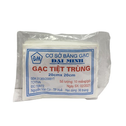 Gạc tiệt trùng Đại Minh 20cm x 20cm (Gói 10 miếng)