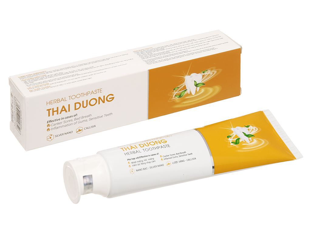 Kem đánh răng dược liệu Thái Dương với thành phần từ các dược thảo thiên nhiên có tác dụng làm trắng răng, loại bỏ mảng bám và vi khuẩn mà không gây mòn răng như các loại kem đánh răng khác. Ngoài ra, sản phẩm còn giúp hỗ trợ điều trị hôi miệng và kháng viêm răng miệng.