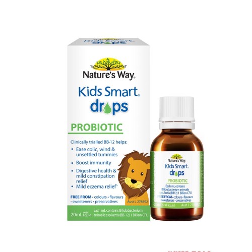 Nature’s Way Kids Smart Drops Probiotic là thực phẩm bảo vệ sức khỏe thuộc nhóm bổ sung các lợi khuẩn có lợi cho hệ tiêu hóa. Sản phẩm được bào chế dưới dạng dung dịch để có thể dễ dàng bổ sung vào chế độ ăn của trẻ.