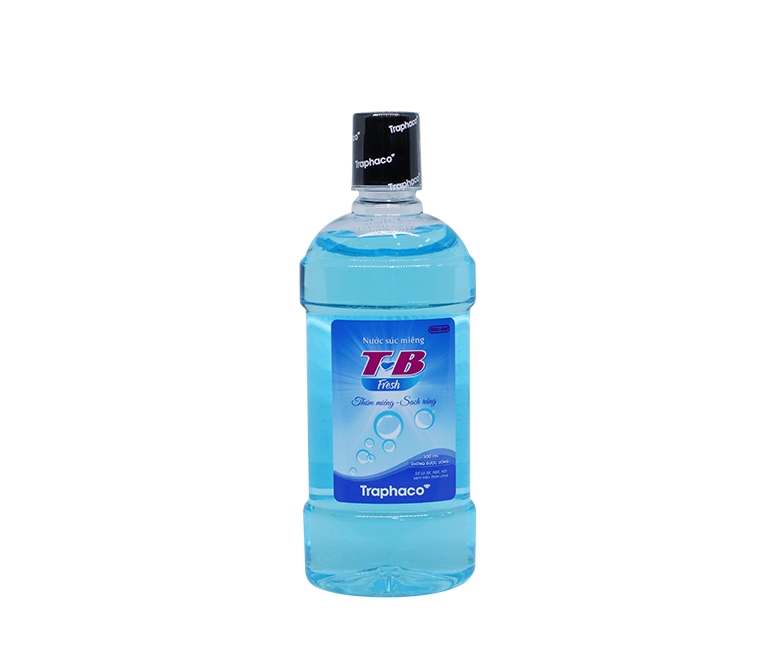 Nước súc miệng T-B Fresh Traphaco (Chai 500ml) của Công ty Cổ phần Traphaco, thành phần chính acid boric, xylitol, natri clorid và natri fluorid, là thuốc dùng để sạch răng, miệng, họng giúp ngăn ngừa viêm họng, viêm lợi, chảy máu chân răng, sâu răng, các tinh dầu thơm mát thúc đẩy tuần hoàn lợi (nướu), khử mùi hôi của thuốc lá, thuốc lào, hành tỏi, các chất tanh.