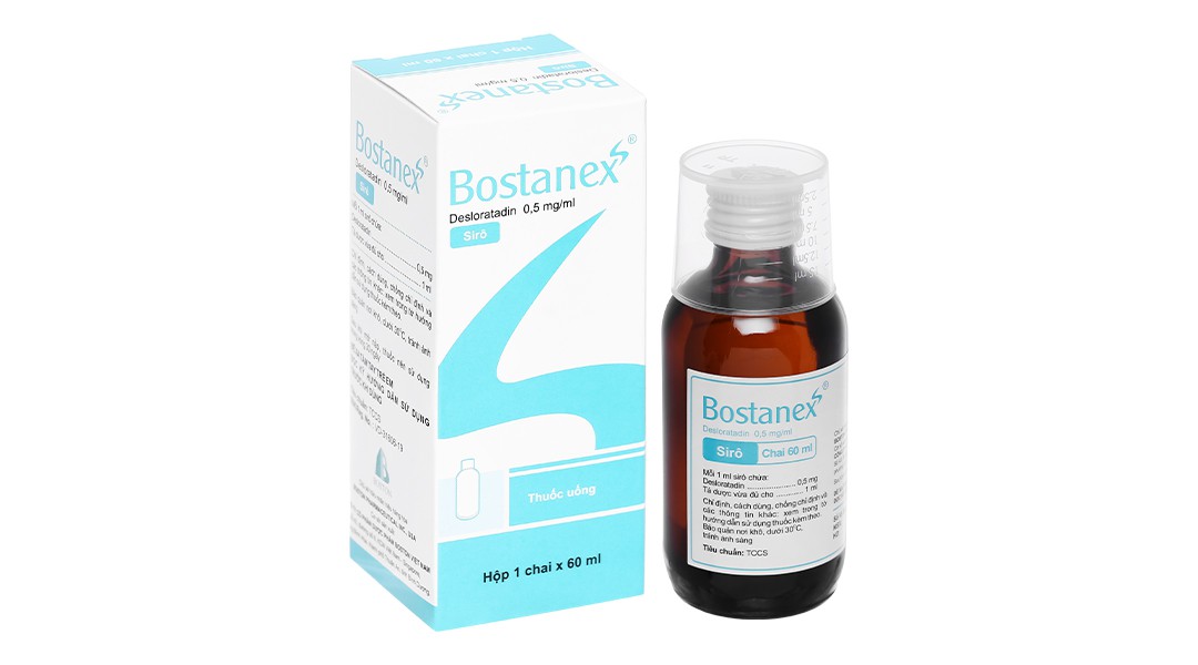 Bostanex 0,5mg/ml là sản phẩm của Boston Pharma, với thành phần chính là Desloratadin. Đây là thuốc được chỉ định để giảm các triệu chứng liên quan đến viêm mũi dị ứng như hắt hơi, sổ mũi và ngứa mũi, cũng như ngứa, chảy nước mắt và đỏ mắt, ngứa họng và ho. Giảm các triệu chứng liên quan đến mày đay như giảm ngứa, giảm kích cỡ và số lượng ban.