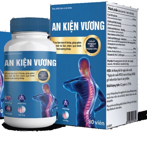 Theo nghiên cứu, nguyên nhân gây đau nhức và thoái hoá xương khớp là do thiếu hụt chất nền sụn khớp. Để đạt hiệu quả giảm thoái hoá xương khớp cần bổ sung dưỡng chất từ cả bên trong và bên ngoài. An Kiện Vương là thực phẩm bảo vệ sức khỏe, được kết hợp từ những thành phần có nguồn gốc thiên nhiên giúp hỗ trợ cho người gặp các vấn đề về xương khớp. Sản phẩm được bào chế dưới dạng viên, sử dụng trực tiếp theo đường uống, an toàn và ít gây tác dụng phụ độc hại.