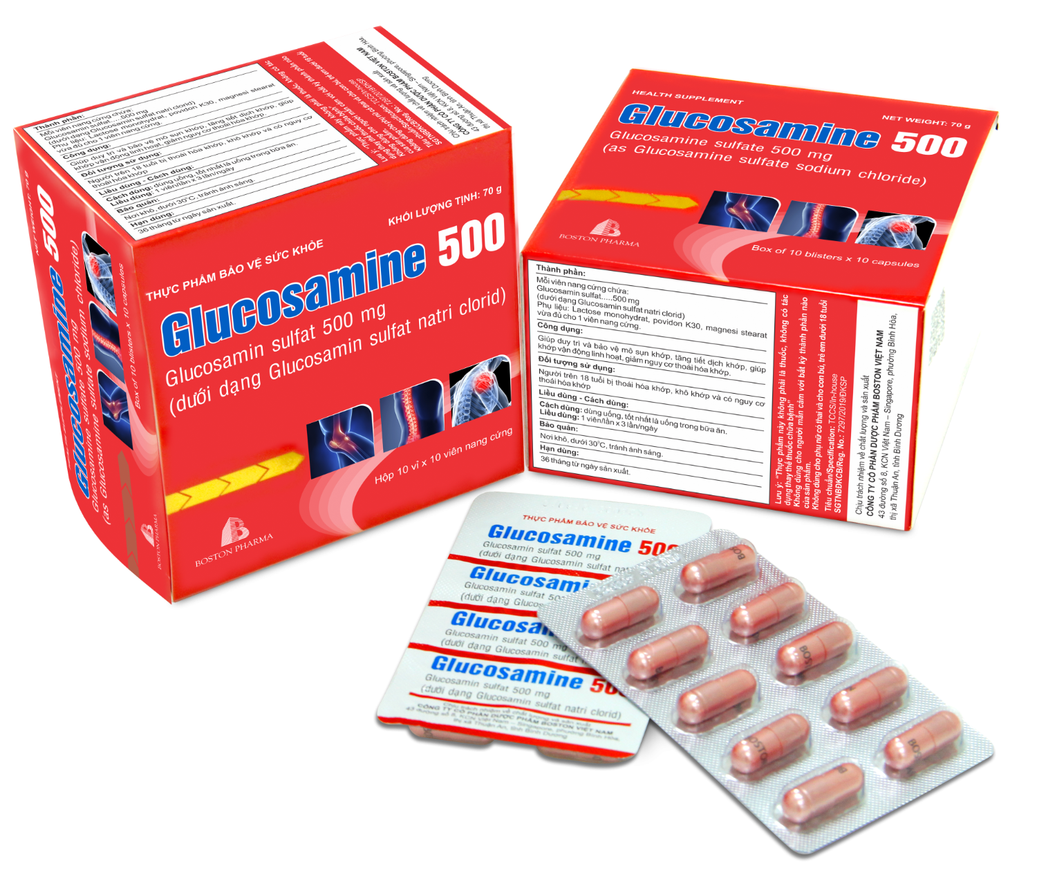 Thực phẩm bảo vệ sức khỏe Glucosamin 500 là sản phẩm từ Công ty Cổ phần Dược phẩm Boston Việt Nam. Với thành phần chính là Glucosamin Sulfat giúp duy trì và bảo vệ mô sụn khớp, tăng tiết dịch khớp, mạnh gân, giảm đau do khô khớp, thoái hóa khớp.