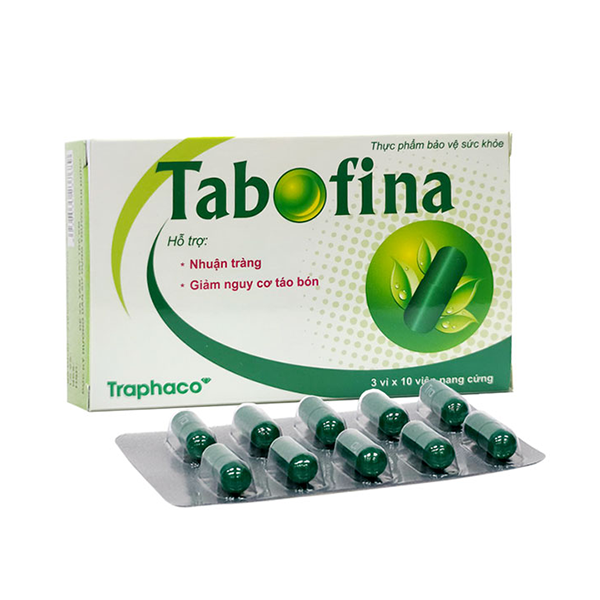 Tabofina là sản phẩm có thành phần lành tính như: phan tả diệp, khoai lang, thảo quyết minh, có công dụng giúp hỗ trợ cải thiện tình trạng đầy bụng khó tiêu. Hỗ trợ nhuận tràng, giảm nguy cơ táo bón.