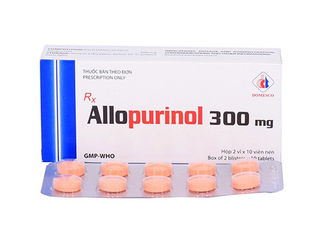 Allopurinol 300 mg của công ty cổ phần xuất nhập khẩu y tế Domesco, thành phần chính allopurinol, là thuốc dùng để điều trị lâu dài tăng acid uric máu do viêm khớp gút mạn tính, bệnh sỏi thận do acid uric (kèm theo hoặc không kèm theo viêm khớp do gút); điều trị sỏi calci oxalat tái phát ở nam có bài tiết urat trong nước tiểu trên 800 mg/ngày và 750 mg/ngày; điều trị tăng acid uric máu khi dùng hóa trị liệu điều trị ung thư trong bệnh bạch cầu, lympho, u ác tính đặc.