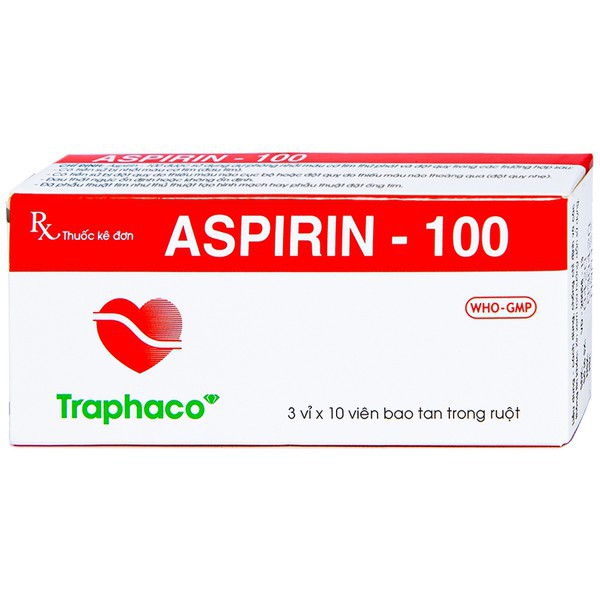 Thuốc Aspirin 100 là sản phẩm của Traphaco Hưng Yên, có thành phần chính là Acid Acetylsalicylic. Thuốc Aspirin – 100 được chỉ định trong trường hợp điều trị dự phòng nhồi máu cơ tim thứ phát và đột quỵ.