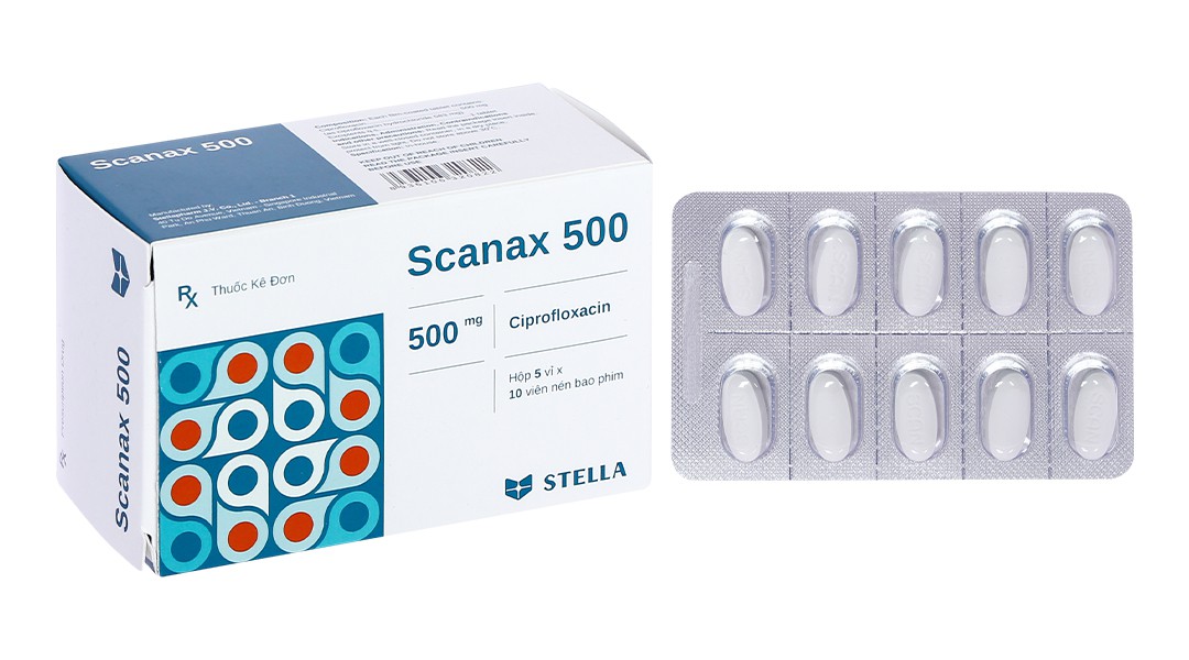 Thuốc Scanax 500mg của Công ty TNHH LD Stada-Việt Nam sản xuất. Thuốc có chứa thành phần chính là ciprofloxacin. Đây là thuốc dùng để điều trị nhiễm khuẩn do các chủng nhạy cảm.