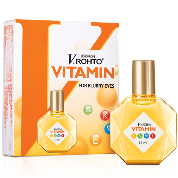 V.Rohto Vitamin là sản phẩm kết tinh của các chất dinh dưỡng gồm Vitamin và Acid amin như: "Vitamin E tự nhiên" thúc đẩy tuần hoàn máu, hỗ trợ cải thiện tình trạng giảm thị lực; "Vitamin B6" gia tăng sự trao đổi chất của tế bào mắt, cải thiện tình trạng mờ mắt, giúp mắt mỏi nhanh chóng phục hồi; "Sodium Chondroitin Sulfate" bổ sung thành phần của nước mắt, bảo vệ bề mặt giác mạc, phòng ngừa khô mắt hiệu quả; "Potassium L-Aspartate" kích hoạt sự hô hấp mô mắt giúp phòng ngừa và điều trị chứng mỏi mắt.