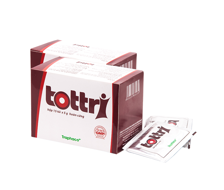 Tottri là sản phẩm được nghiên cứu bởi các chuyên gia Công ty cổ phần công nghệ cao Traphaco với các nguyên liệu có nguồn gốc thảo dược: Đẳng Sâm, Trần Bì, Hoàng Kỳ, Thăng Ma, Sài Hồ, Liên Nhục, Đương Quy... Tottri có công dụng chính là hỗ trợ làm bền vững thành mạch, hỗ trợ co búi trĩ, hỗ trợ giảm các triệu chứng trĩ nội, trĩ ngoại như: Đau rát hậu môn, chảy máu khi đại tiện. Bên cạnh đó sản phẩm còn hỗ trợ giảm trĩ tái phát cho người bị trĩ.